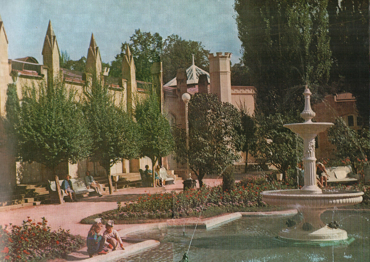1. Застройка Курортного бульвара. Вот фото просторного Курортного бульвара с большим числом деревьев. Обратите внимание, что оттуда открывался прекрасный вид на горы. Сейчас он закрыт. Неужели в СССР не могли построить высокое здание на месте небольшой пончиковой? Могли, но понимали, что нельзя этого делать. Понимали, что нельзя строить много гостиниц, ресторанов, магазинов на небольшом пространстве.